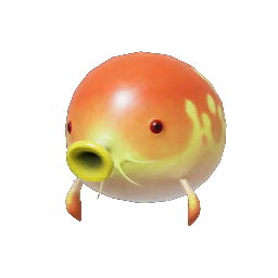 The Withering Blowhog (アオケダラ) is an enemy found in both Pikmin 2 and Pikmin 4. It is a smaller variation of the Puffy Blowhog, and it has orange-red skin with yellow spots that seem to form a flame design and a white underside. It also seems to have two whisker-like appendages under its' snout that are white in color.